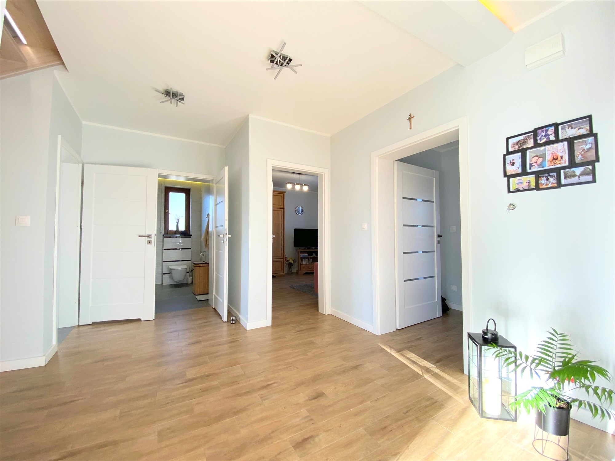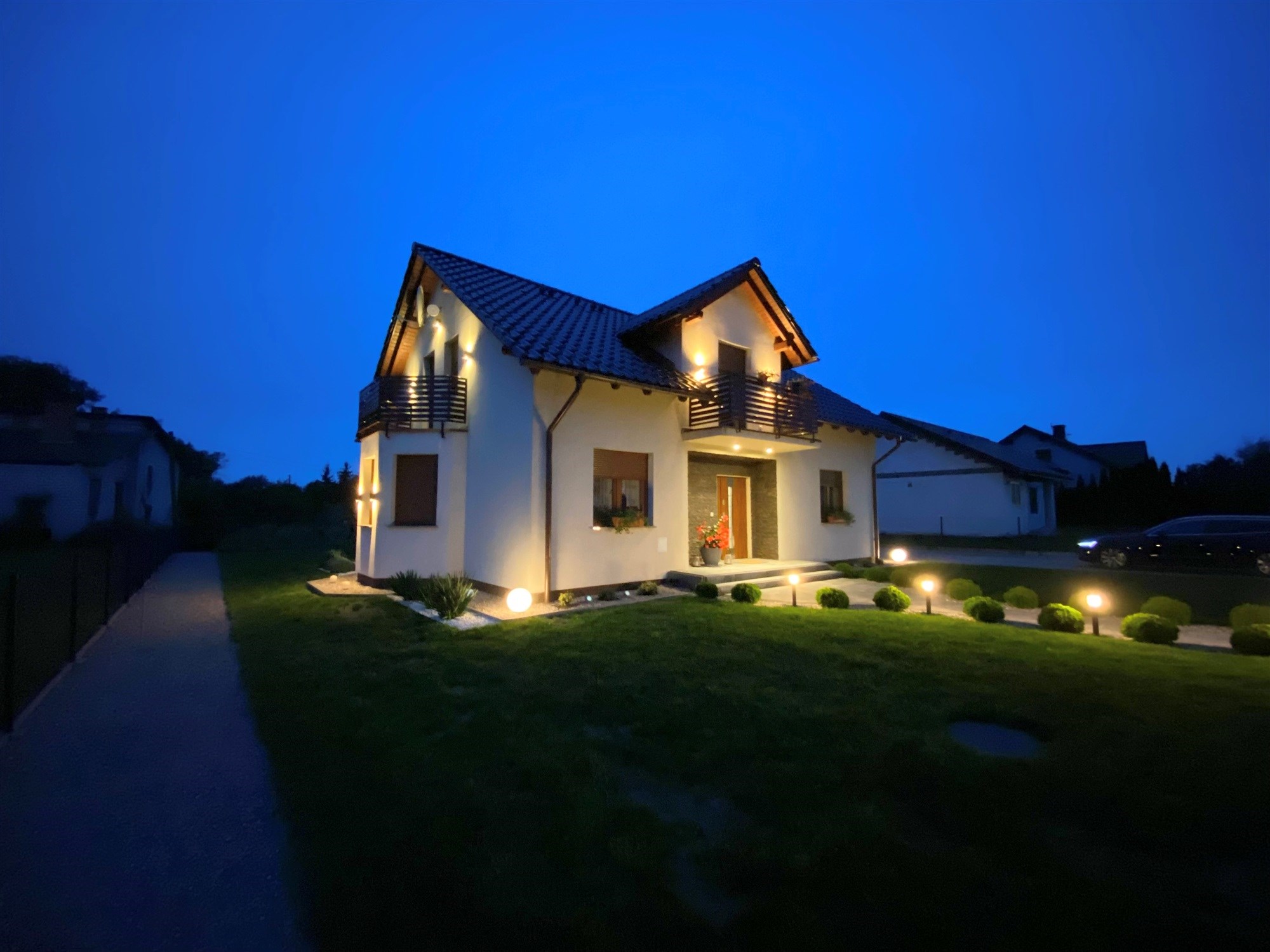 Dom znajduje się na działce o powierzchni 904 m2. Oprócz domu, na działce znajdziemy wolnostojący garaż o powierzchni ok 34 m2. Podjazd utwardzony płytami ażurowymi oraz kamieniem. Za domem przestronny taras. Wkoło przepiękny, gęsty trawnik oraz pojedyncze nasadzenia.