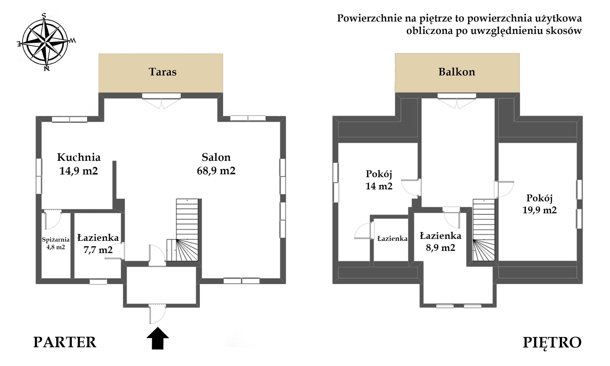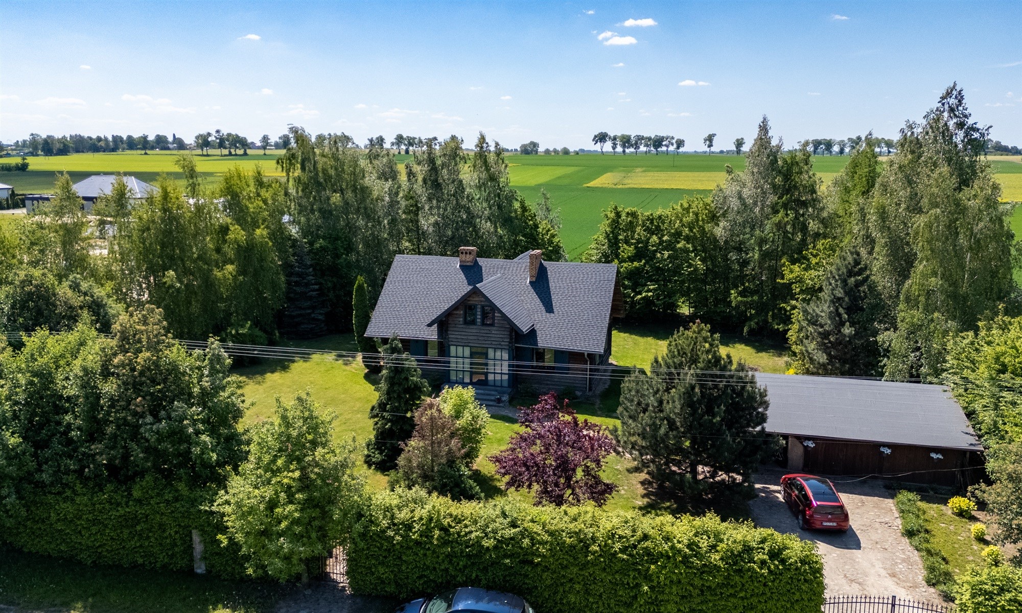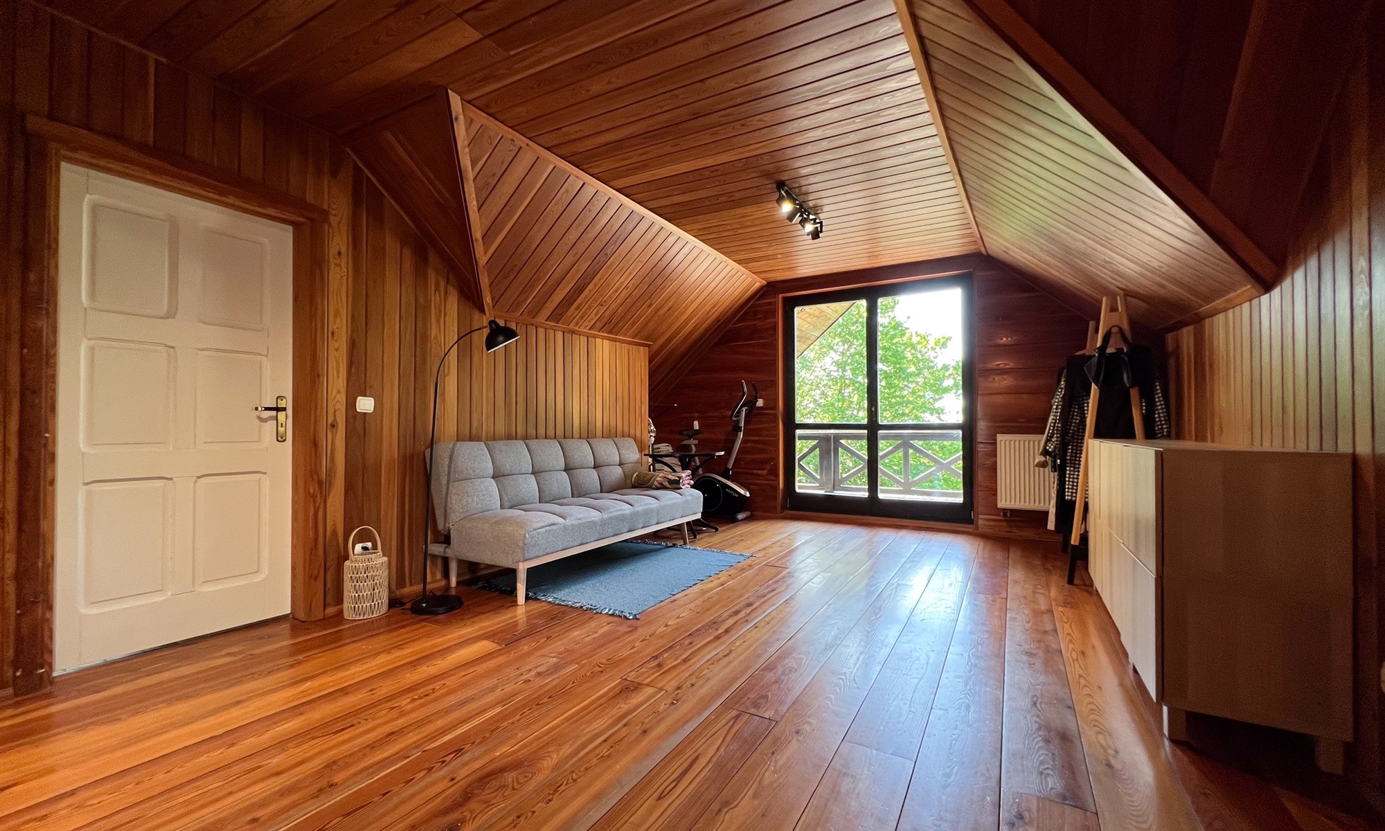 Ten klimatyczny, wyjątkowy dom o powierzchni użytkowej 159,2 m² (całkowita powierzchnia po podłodze wynosi 176,1 m²), wykonany został z solidnych bali modrzewiowych – drewna znanego z dużej twardości, odporności na wilgoć, grzyby i insekty oraz niezwykłej trwałości. Cała przestrzeń domu została starannie zaprojektowana, aby zapewnić jak najwięcej przestrzeni do codziennego życia.