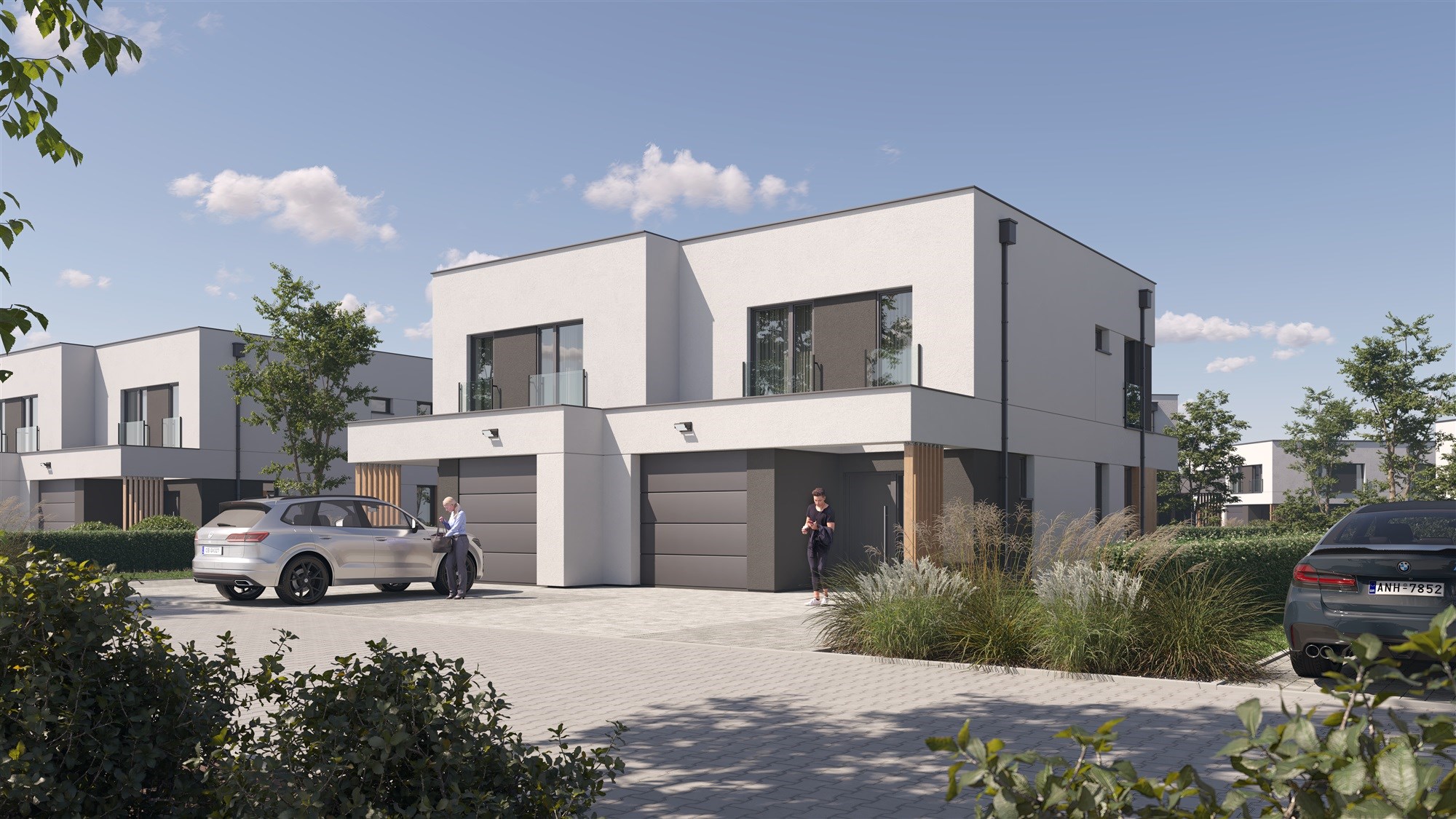 • Gotowa elewacja z oświetleniem, taras, podjazd z kostki, ogrodzenie, trawa oraz nasadzenia