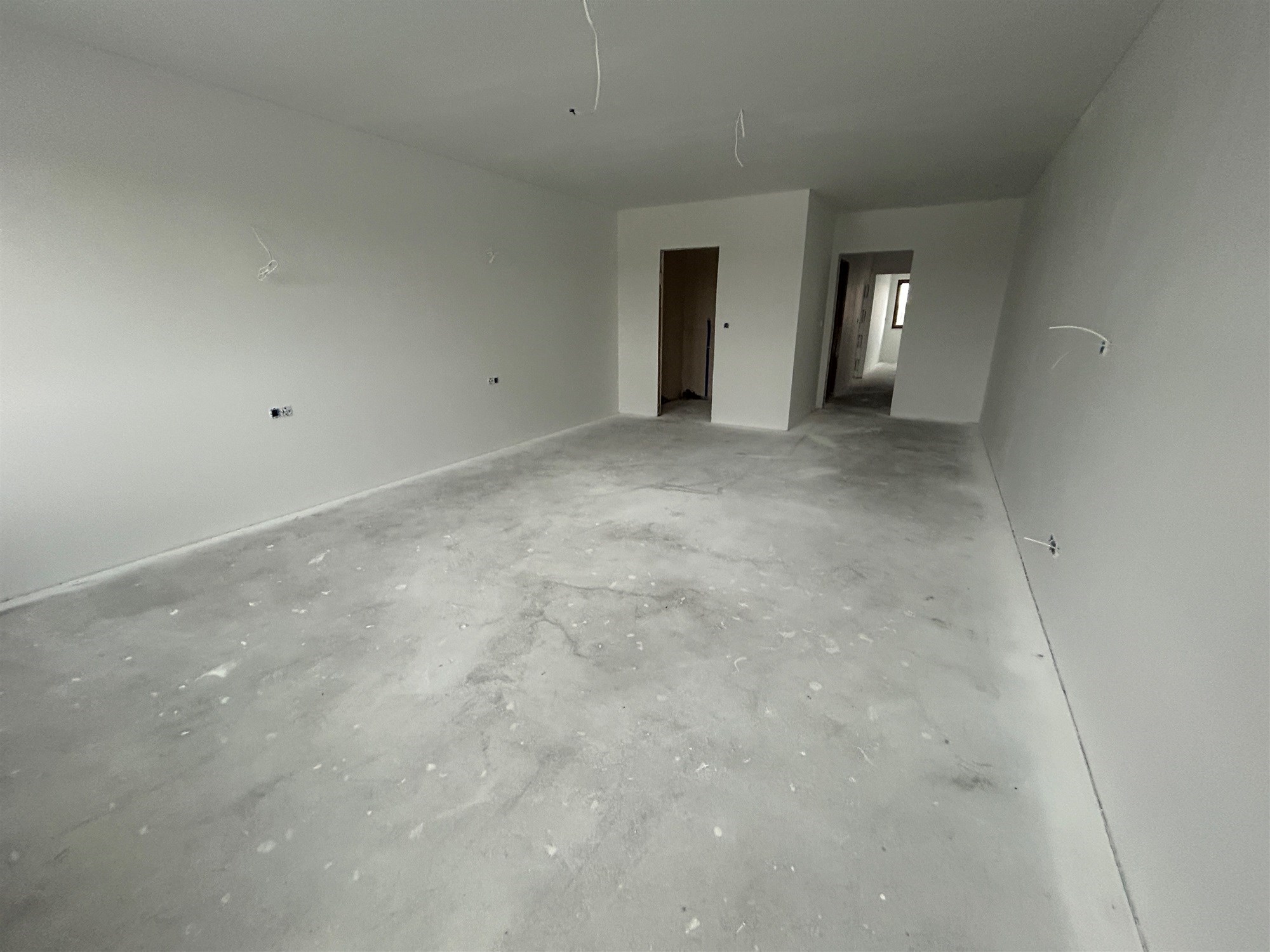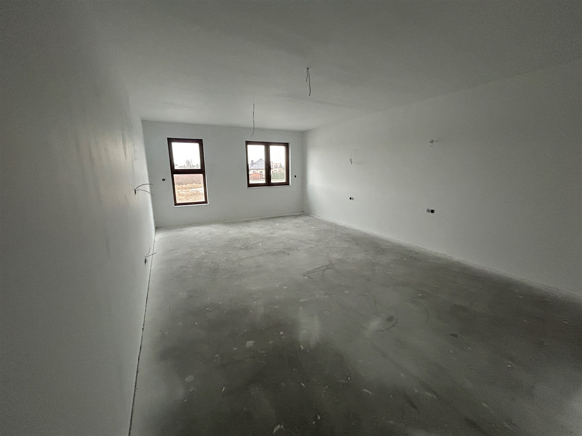 Ściany pomalowane, gniazda elektryczne zamontowane.